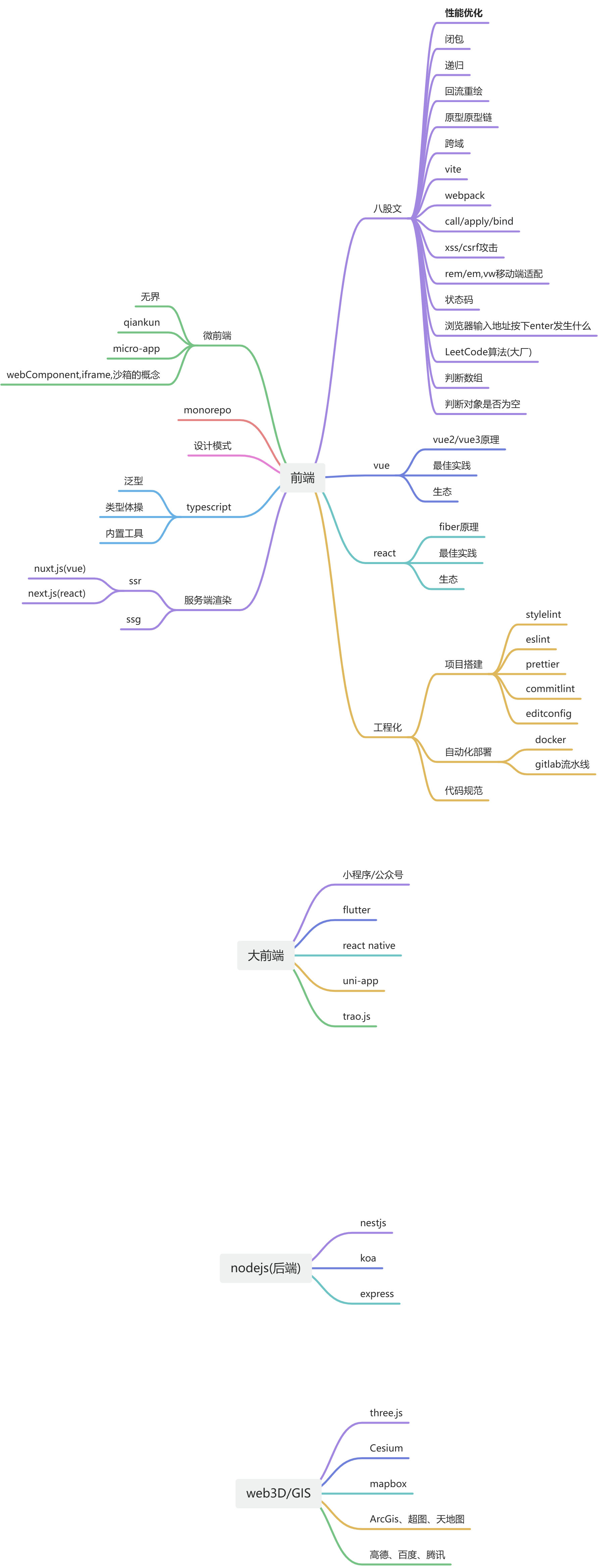 Vue.js设计与实现,react的React设计原理都是不错的书籍。 - 同时梳理思维导图,方便理解和回顾,这一类的知识当时是学会了,当时过段时间是很容易遗忘的,所以笔记和思维导图是很有用的。