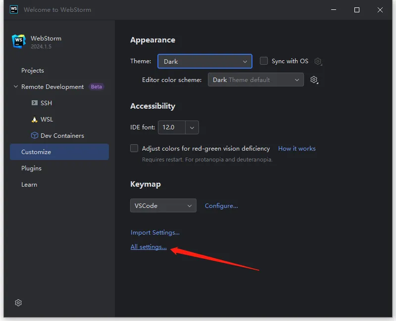 - webstorm 全局配置修改需要在未打开项目的时候进行设置